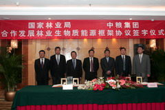 国家林业局副局长、林木生物质能源领导小组组长祝列克和中粮集团副总裁于旭波分别代表国家林业局和中粮集团签署了合作框架协议。
