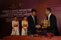 中粮君顶酒庄总裁陈云昌与上海保时捷俱乐部副会长蒋佳学互赠礼品