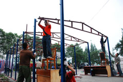 向民政厅捐赠700万元的救灾物资后,率领地产西南区部分管理人员直奔彭州,与生龙活虎的突击队员并肩战斗。5月16日,孙伊萍总经理继续率队前往都江堰慰问灾民,与突击队员一起卸载救援物质,同时,另一支小分队赶赴彭州通济镇建设“中粮之家”。经过16、17、18日连续三天的奋战,由十几间活动板房、几十顶救灾帐篷组成,能够容纳数百灾民的“中粮之家”率先在通济镇建成。