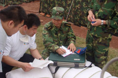 5月18日,突击队又迎来了紧张而忙碌、充实而快乐的一天。一批突击队员兴奋地跟随中粮地产孙忠人董事长、集团柳丁书记率领的慰问小组奔赴龙门山部队驻地,看望并慰问奋战在此地的成都空军某部官兵。在深入了解部队的救援情况后,孙忠人董事长、柳书记被战士们“特别能吃苦”的精神深深地感动。柳丁书记说:“每当看到我们的部队冲在抗震救灾的第一线,看到亲切的绿军装,我们心里就踏实了,正是因为有人民军队,才有了我们今天的安居乐业。”随后,孙忠人董事长与柳丁书记,将中粮生产的金帝巧克力等物质亲手送到了部队领导手中。柳丁书记感慨地说:“有一句话是这样说的,我们中粮生产的金帝巧克力只给最爱的人,今天能到抗震救灾第一线将巧克力送给部队,也算实至名归,也是中粮人的荣幸”。临别前,中粮人高唱着司歌将一面签满姓名的司旗送给了部队,“有蓝蓝天、有个家园,风雨来时我们肩并肩”的歌声在驻地不断回响。另外两批突击队员分别前往江油、绵竹和都江堰慰问解放军,分别捐赠了50万元、27万元的巧克力。5月19日,突击队又马不停蹄的前往都江堰慰问四川武警总队,捐赠了31万元的巧克力。
