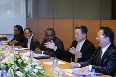 11月20日,于旭波总裁在北京中粮福临门大厦会见了加蓬SNBG董事长兼总经理Serge Rufin Okana一行,双方就加蓬最新政治经济局势、中粮在加蓬木材业务发展、SNBG原木加工情况等事宜交换了意见,并探讨了进一步推进合作的可能性。
