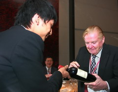 作为国宴用酒的长城桑干酒庄酒,此次成为了《商业周刊》全球CEO论坛的唯一指定用酒。席间,当诺贝尔经济学奖获得者、有“欧元之父”之称的蒙代尔教授得知今晚的用酒是长城葡萄酒时,非常高兴地说“长城跟我是老朋友” 。蒙代尔曾经多次喝过长城葡萄酒,他认为“长城”是中国最具影响力的葡萄酒品牌。蒙代尔教授一边笑着向现场嘉宾说着,一边在长城桑干酒庄特别珍藏级的酒标上签字。