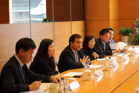 3月22日,集团总裁助理、财务部总监马王军在福临门大厦会见了星展银行(香港)有限公司行政总裁庞华毅(Sebastian Paredes)一行,双方就目前已开展合作的业务进行了回顾、交流和探讨。