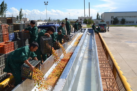 6月27日,中粮屯河和田果业、喀什果业相继开机生产,农户积极排队交售优质原料,目前生产状况稳定,中粮屯河果业2012产季拉开帷幕。