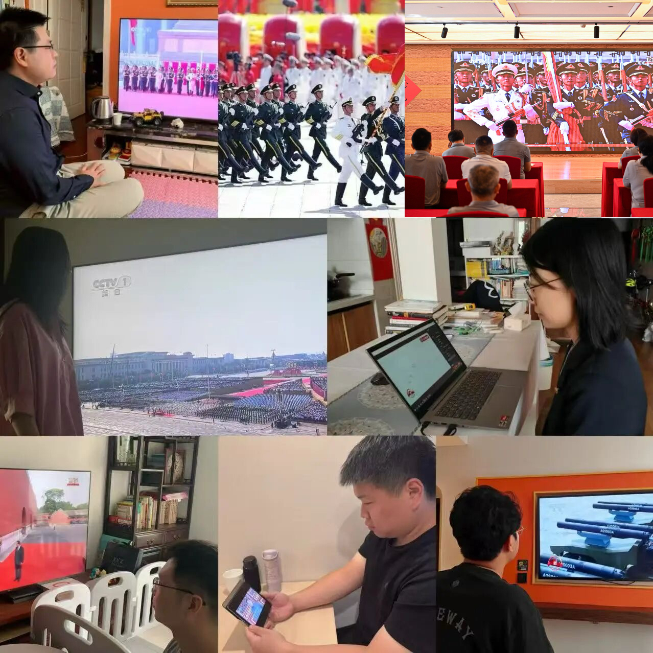 随着阅兵方阵的铿锵行进,大家的心中充满了对祖国的热爱和自豪。这一刻,革命先烈的英勇精神与今日强军的热血荣光在每个人心中激荡,化作坚守岗位、努力奋斗的澎湃动力。